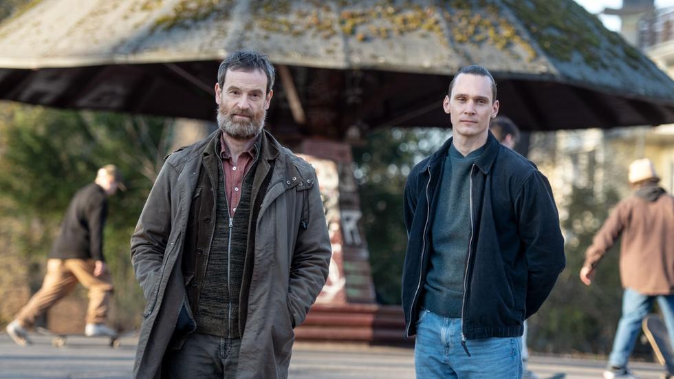 Dortmund Deutschland 11 Marz 2022 Die Schauspieler Jorg Hartmann L Als Peter Faber Und Rick Okon Als Jan Pawlak Stehen Wahrend Eines Fotoshootings Fur Den Dortmunder Tatort Du Bleibst Hier Am