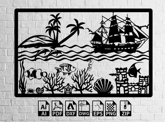Sea Ship Svg Wall Art Ship Sea Design Dxf Wallart Decor Cnc Etsy Ireland